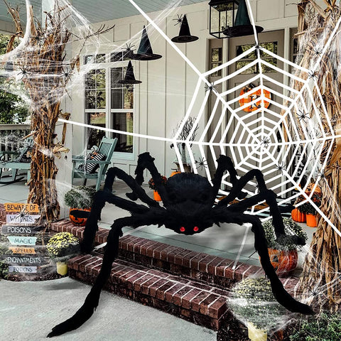 【Ideal Halloween Spider Decorations】 - Creepy decor for halloween decorations outdoor indoor. The large spider perfect for decorating your Halloween haunted house, a yard or wall, office or classroom, party or display, even the corner of the home. Also perfect for Halloween costumes, special school events, other performances and so on.