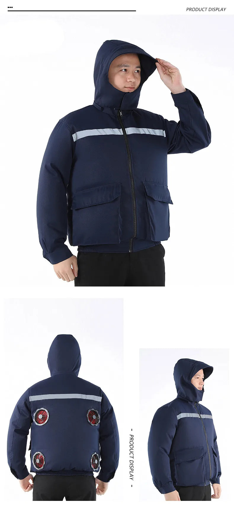 A cooling work jacket with reflective strips, a comfortable long-sleeved air conditioning jacket protects the body from the heat and is suitable for night work. Of course, work efficiency is reduced in the heat! Fan work jackets frequently circulate air, evaporate sweat and keep the body temperature cool, greatly improving work efficiency.